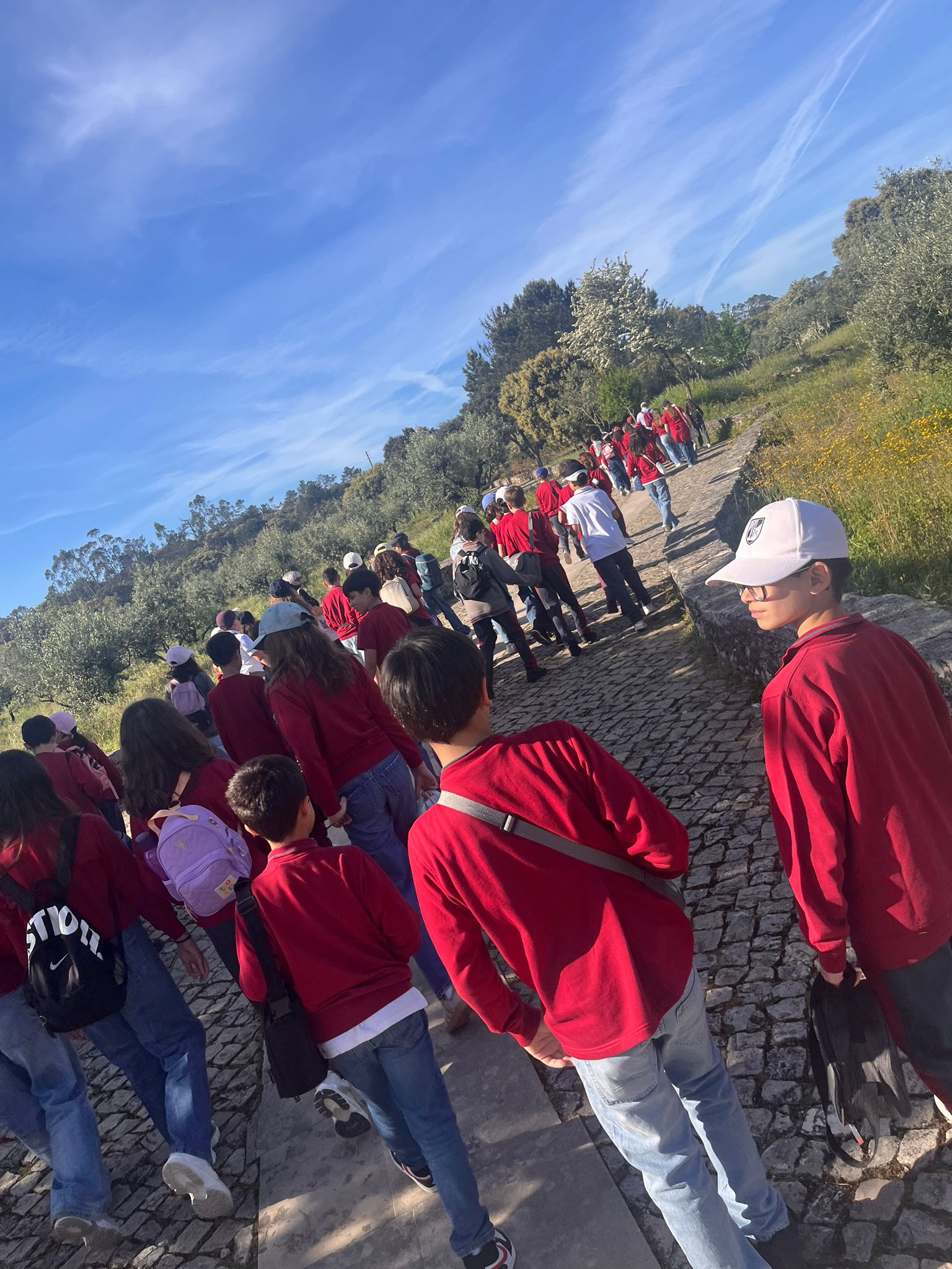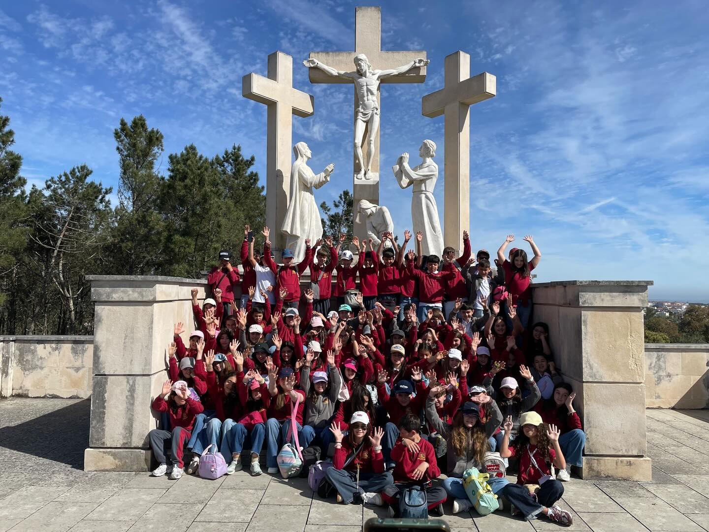 No primeiro dia, os sessenta e seis alunos visitaram o Centro de Interpretação da Batalha de Aljubarrota, onde assistiram a um filme imersivo surpreendente sobre o Condestável Nuno Álvares Pereira e aprofundaram os seus conhecimentos sobre a tão importante batalha de Aljubarrota; o Mosteiro da Batalha, onde puderam observar a beleza da obra construída para agradecer a Nossa Senhora pela vitória; e as Grutas de Mira de Aire, que impressionaram com as suas fantásticas formações minerais, analisadas nas aulas de Ciências Naturais. Já ao final do dia, dirigiriram-se a Fátima para participarem na oração do Terço, sendo o primeiro mistério recitado pelos delegados de pastoral de cada uma das três turmas.