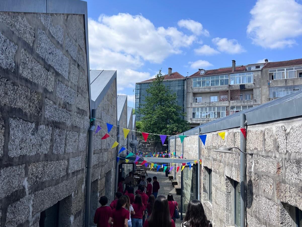 Os alunos do 9. ano foram à Casa da Memória, no âmbito das disciplinas de Cidadania e Desenvolvimento e Educação Visual. Acomapanhando a explicação do Guia, foram desafiados a fazer novas leituras do património vimaranense e, simultaneamente, a dar-lhe um valor concreto, enquanto parte da identidade nacional. Recorrendo a abordagens dinâmicas e interativas, os alunos perceberam a importância da construção da memória do território e das pessoas que o habitam e experimentaram um sentimento de pertença à sua cidade, aspetos importantes para uma cidadania ativa e participativa.